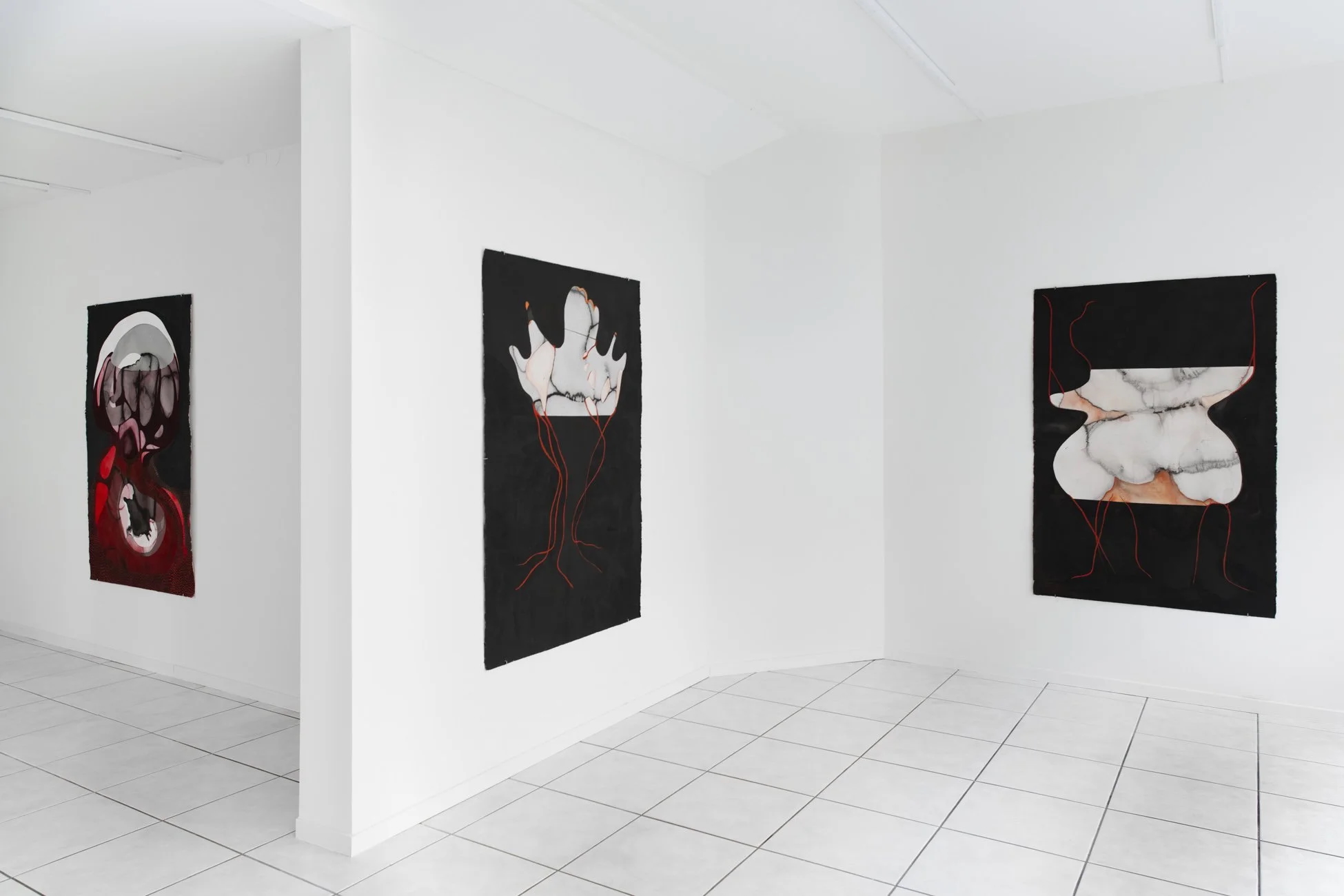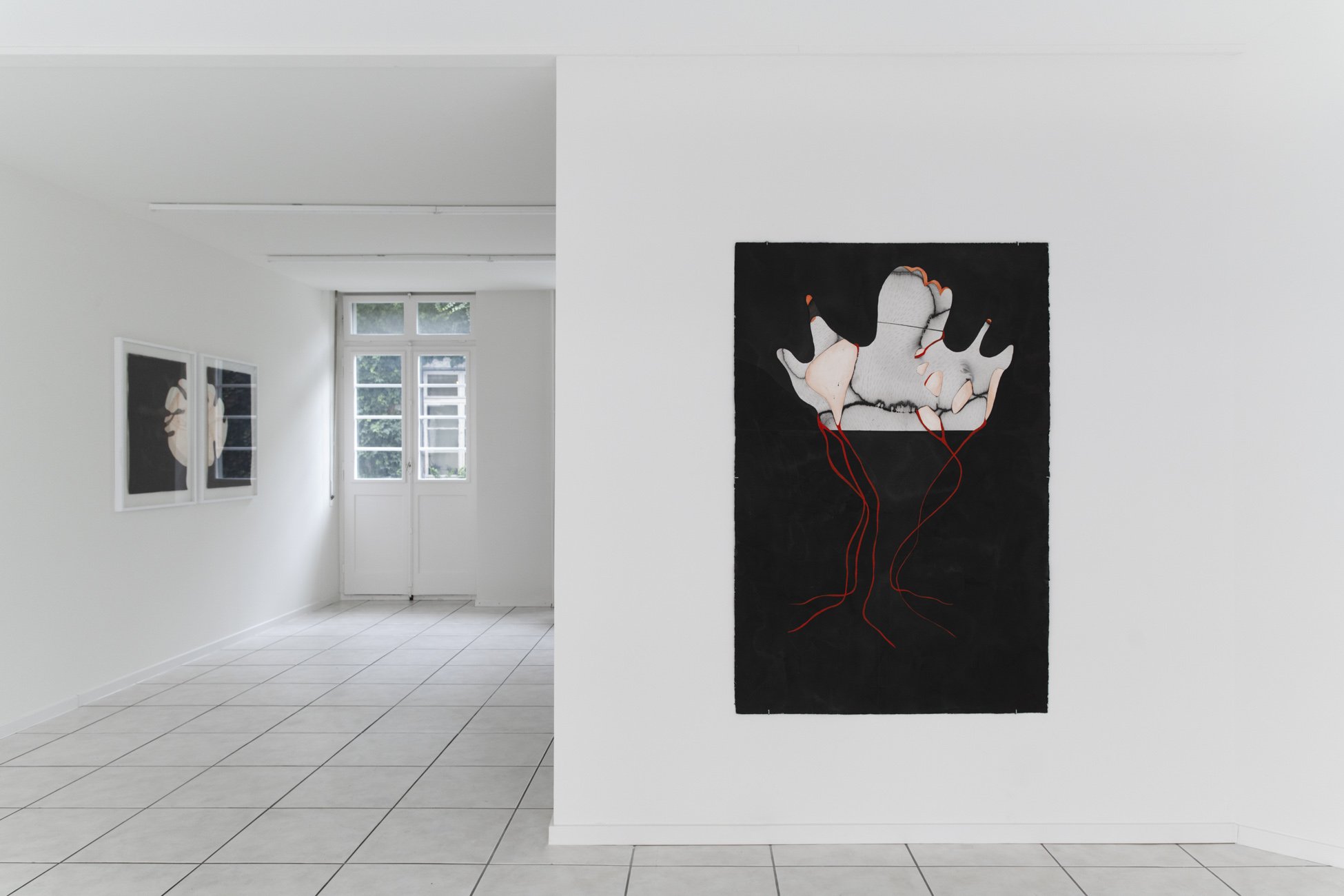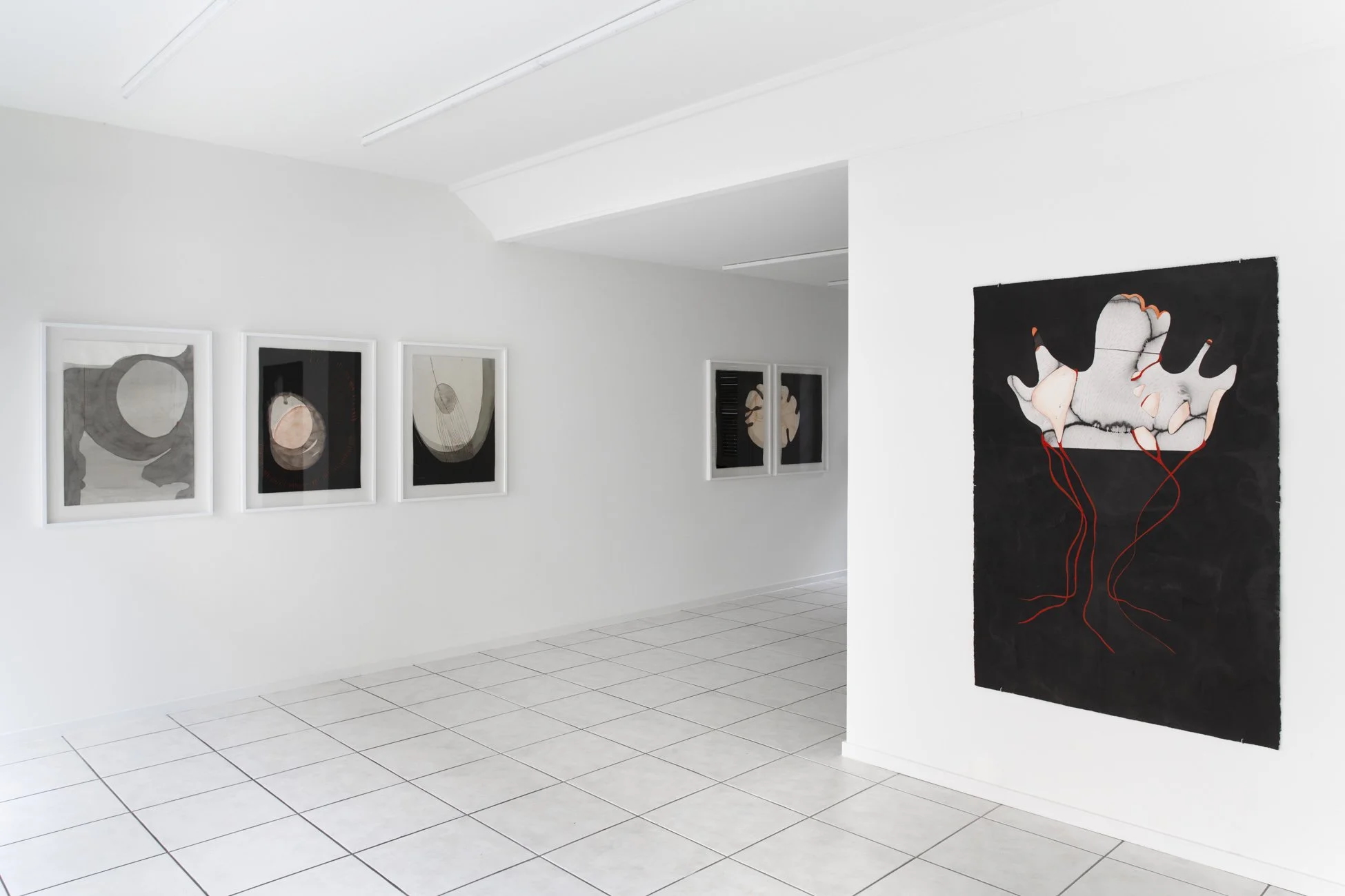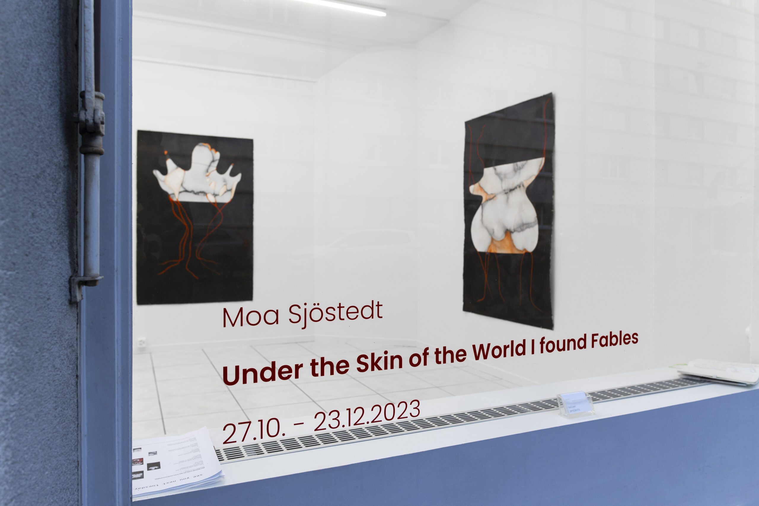 In the exhibition ”Under the skin of the world I found fables” Moa Sjöstedt shows a series of ink and gouache drawings on paper made between 2017 and 2019. The drawings (re)construct the skeleton of suffocated wrath as a part of an architecture of oppression within patriarchy. In her artistic practice, Moa creates worlds in which visceral, affective and physical aspects of life become tangible. Her paintings, drawings and texts are relics from these worlds.
