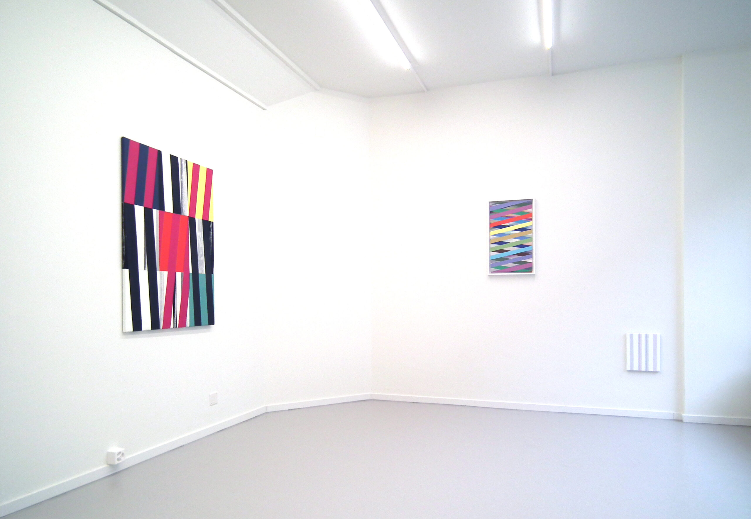 Installative harmony is von Burg’s ultimate goal. She works with the mood created by the reverberations of colors in the room and aims to promote a relationship between the pictorial object and its surroundings—without losing sight of the object. In her artistic practice, color and rhythm are the main protagonists, where hue, material, technique, and size vary. Just as different as the dimensions of the colored areas are the contrasts between unlikely color combinations. Depending on the changing perspective of the viewer in the space, pictorial elements begin to vibrate, thus creating plasticity and evoking mental afterimages.