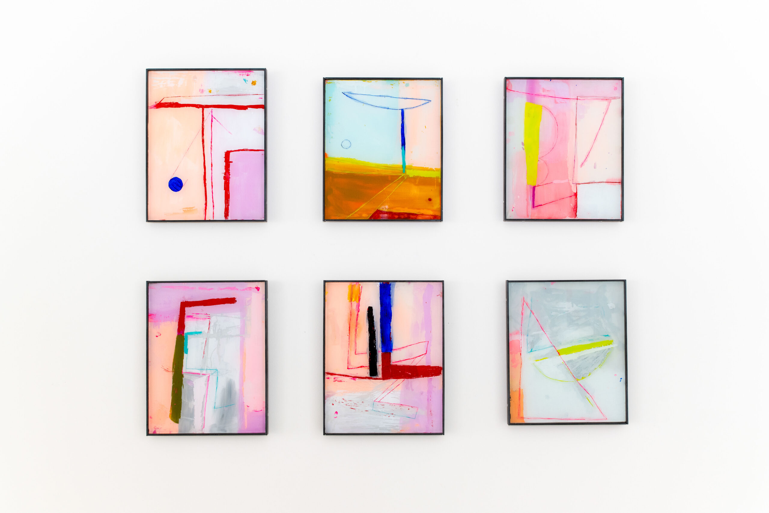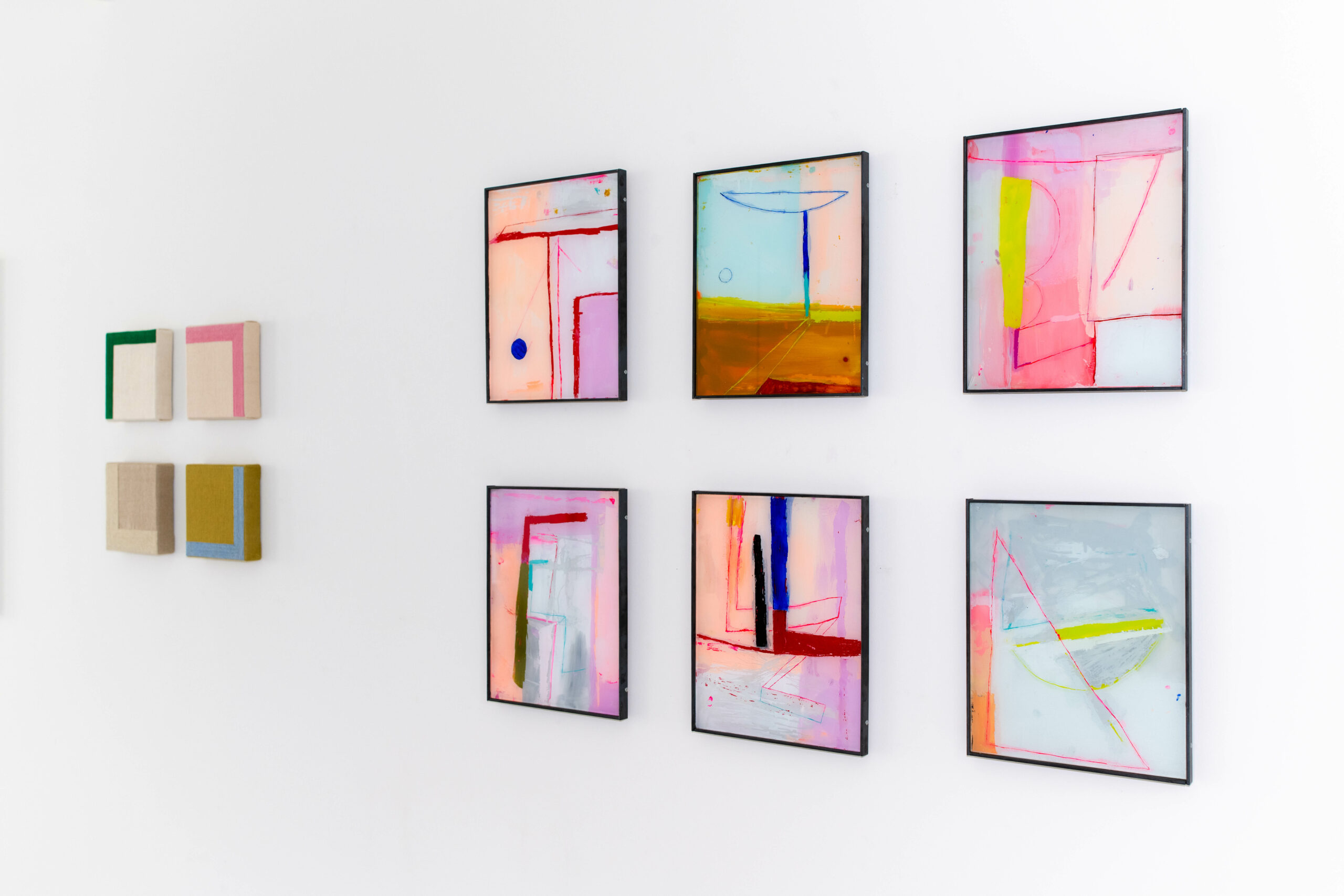 Thieles Arbeiten erforschen das Zusammenspiel von Linie, Fläche und Farbe. Sie findet Freude daran, Linien und Flächen zu überlagern und deren Positionen zueinander stetig neu zu verhandeln. Eine vermeintlich dominante Fläche, die fast alles unter sich begräbt, kann sich als weniger bedeutend herausstellen als eine darunterliegende, die durch Farbe, Struktur oder Bewegung eine stärkere Präsenz in der Komposition entfaltet. So entsteht ein spannender Dialog zwischen den Ebenen, in dem sich Räume formen und verschieben.