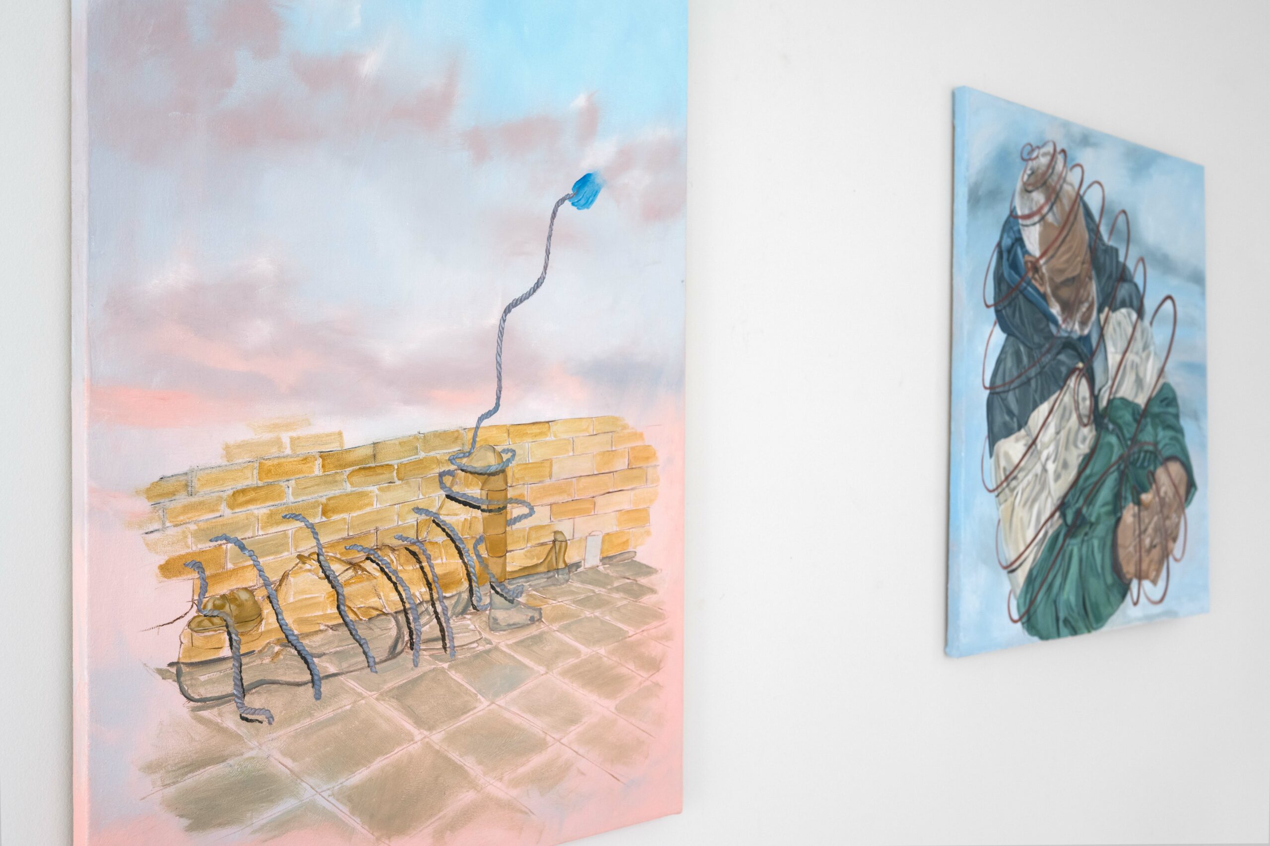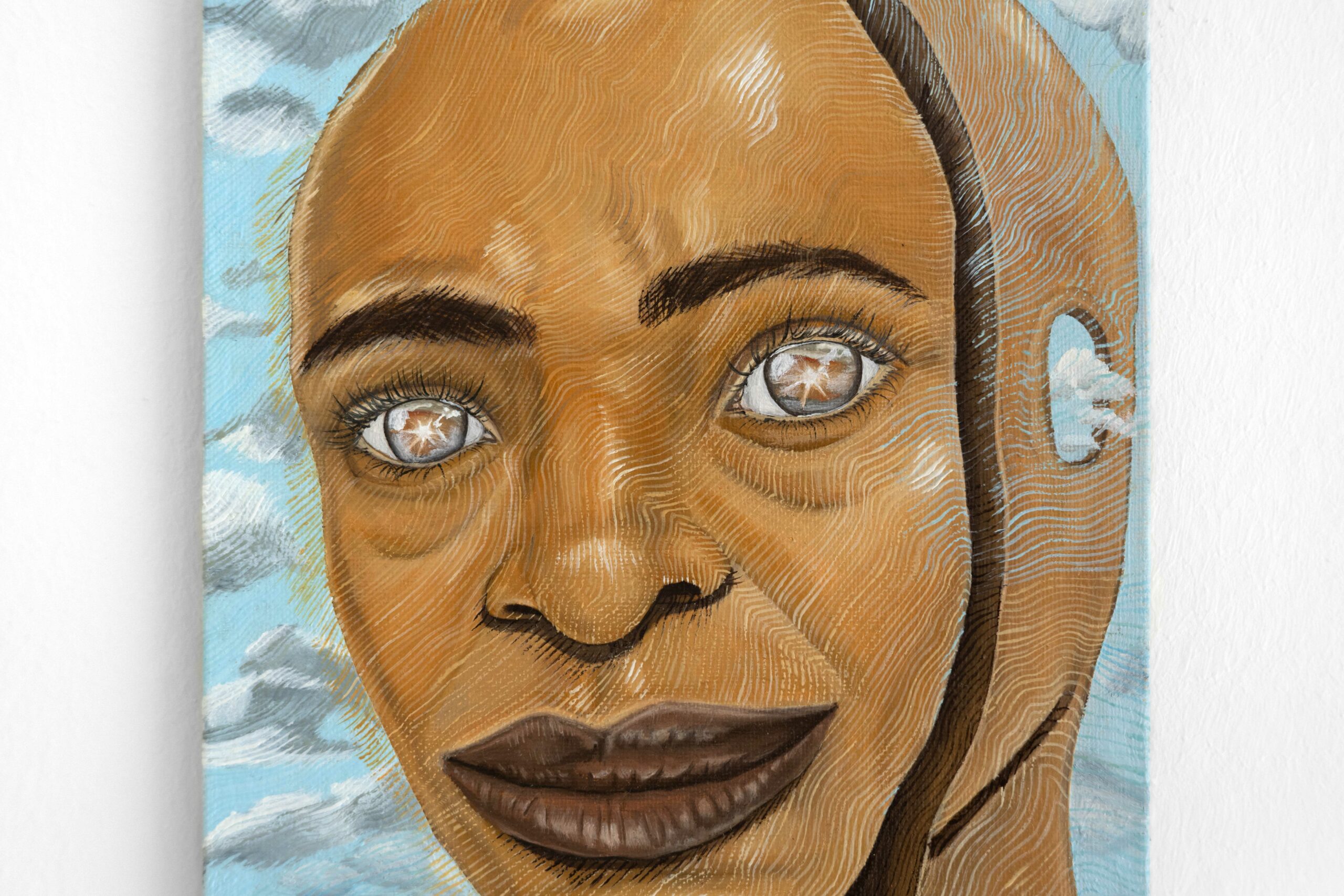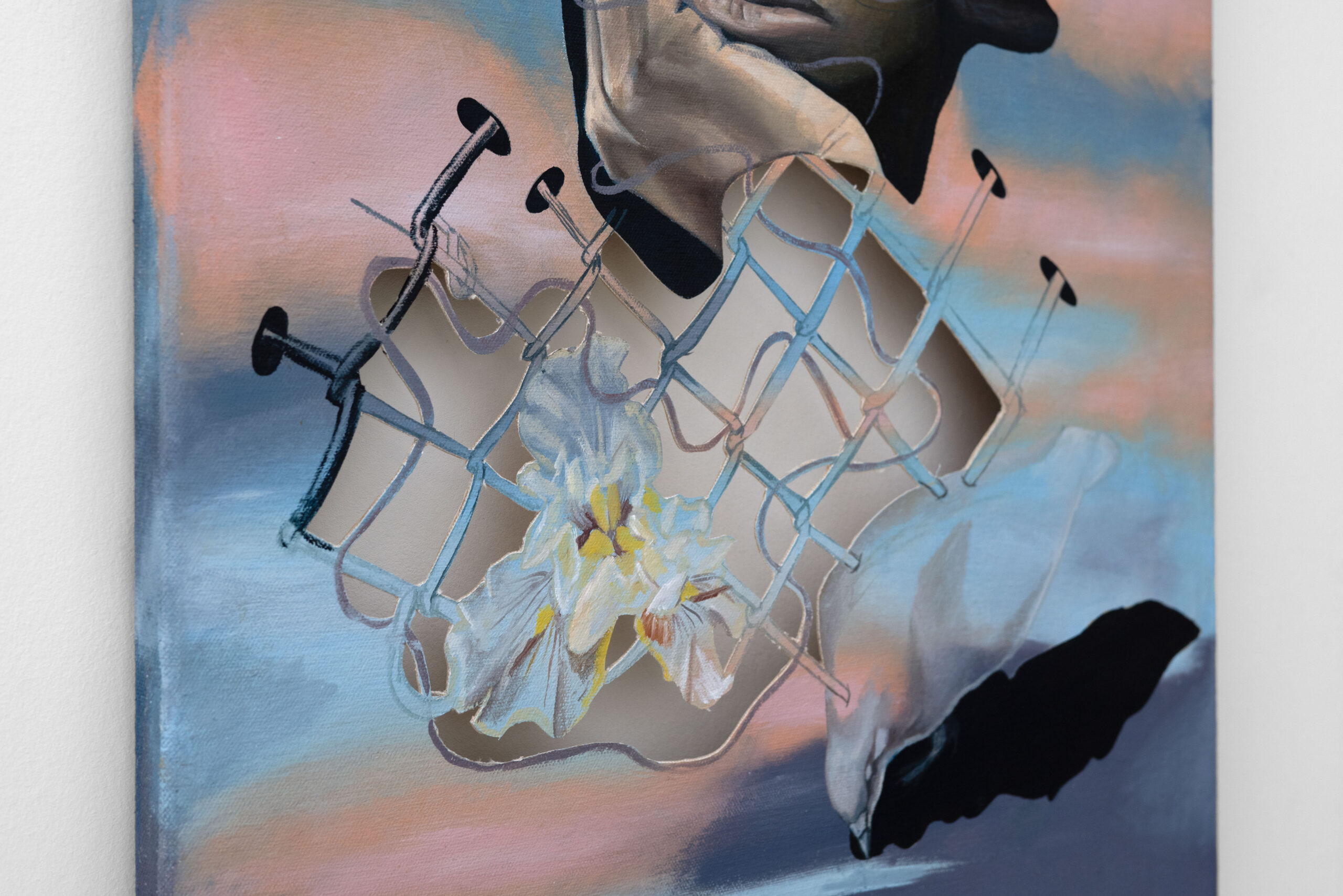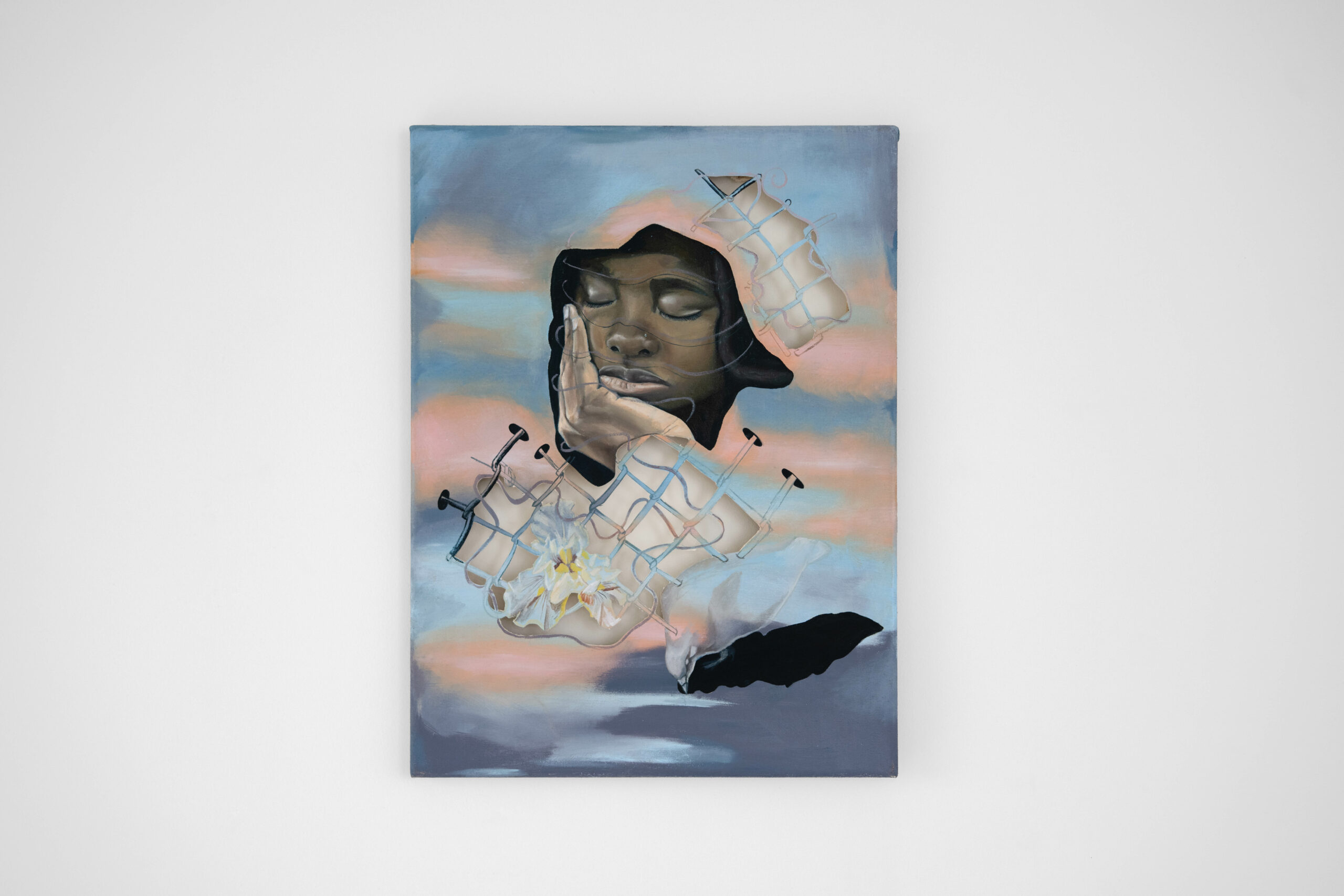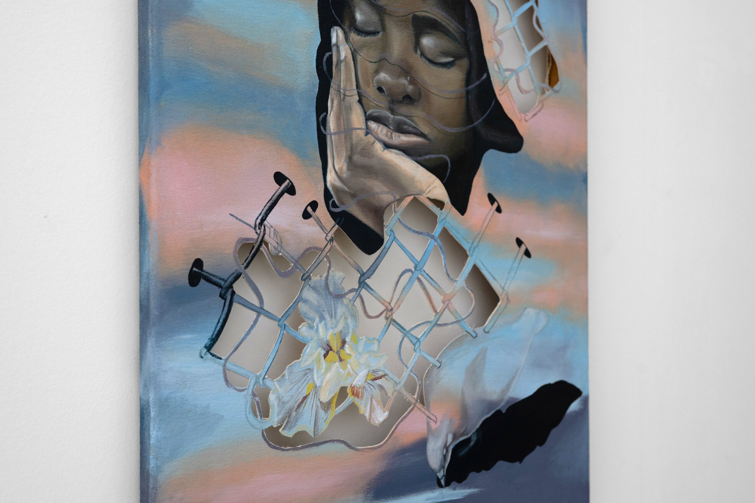 Even God Misses Things is a solo exhibition by Afro figurative-surrealist painter Ibtisam Tasnim Zaman. In this body of work, Zaman reflects on surveillance culture and its aspiration to emulate divine omniscience through mobile technologies and the growing presence of militarization.