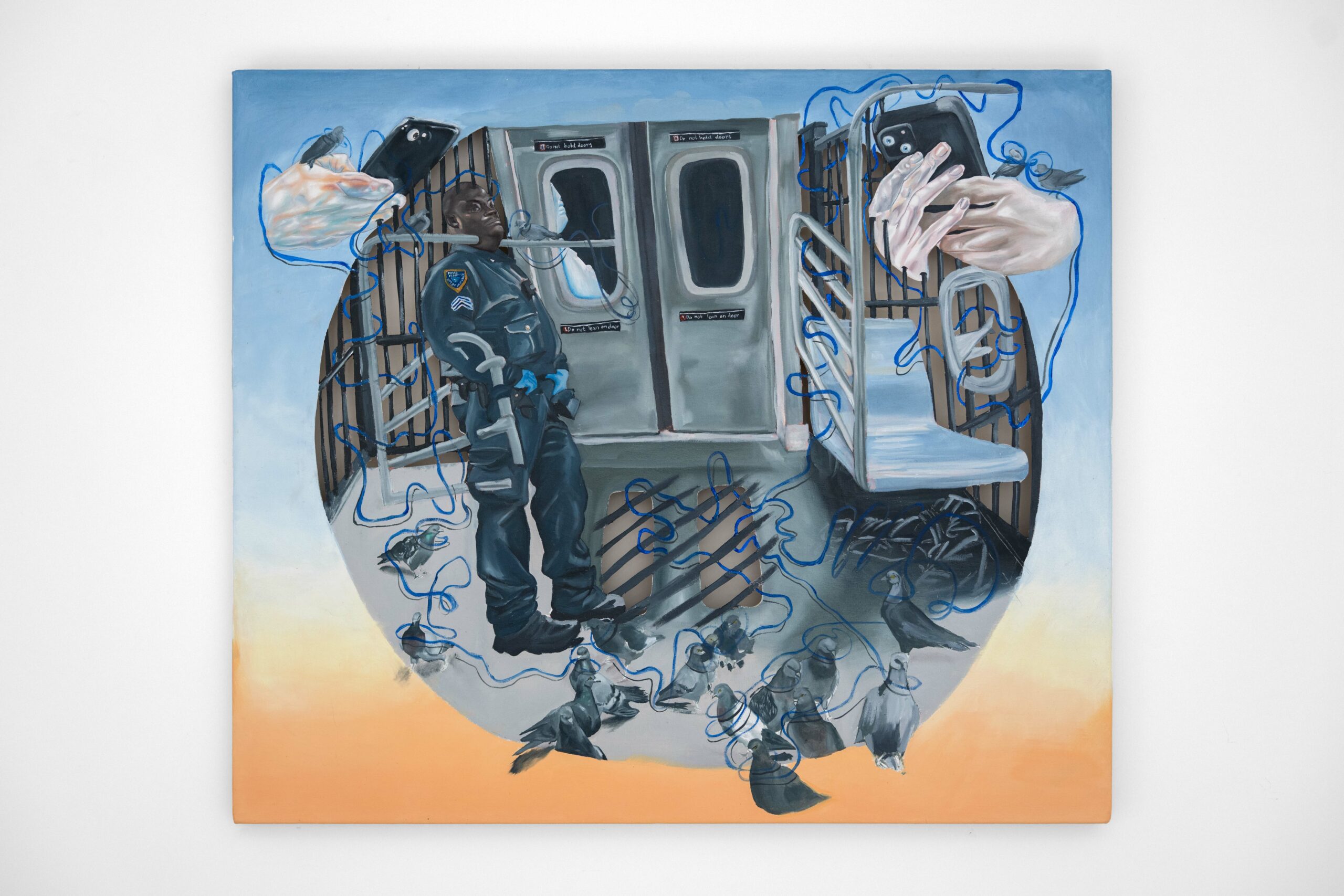 Drawing connections between religion and contemporary society, Zaman reaches into her own layered experience—as a Muslim child, a constant traveler, and a New Yorker—for inspiration. The imagery in this exhibition traverses deconstructed train stations, airplane windows, handheld objects, moving bodies, and the symbolic veil—a delicate membrane between perception and reality.